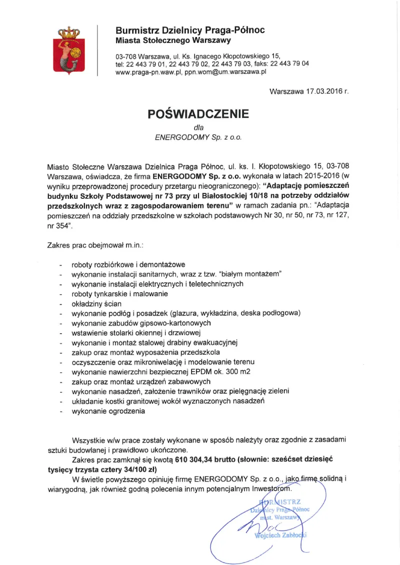 • kompleksową realizację robót budowlanych i instalacyjnych przez naszych wyspecjalizowanych i doświadczonych pracowników