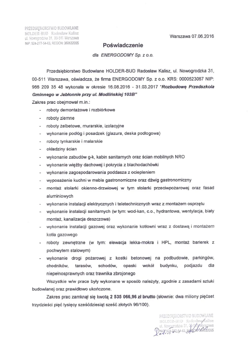 —— Kompleksowa realizacji inwestycji budowlanych